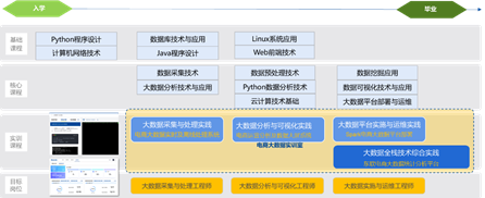 实训室配套二级项目基于高校大数据人才培养目标,对标目标岗位数据采集与处理工程师、大数据分析与可视化工程师、大数据实施与运维工程师的专业技术能力需求,旨在帮助学生夯实工程实践能力和提升岗位就业能力。