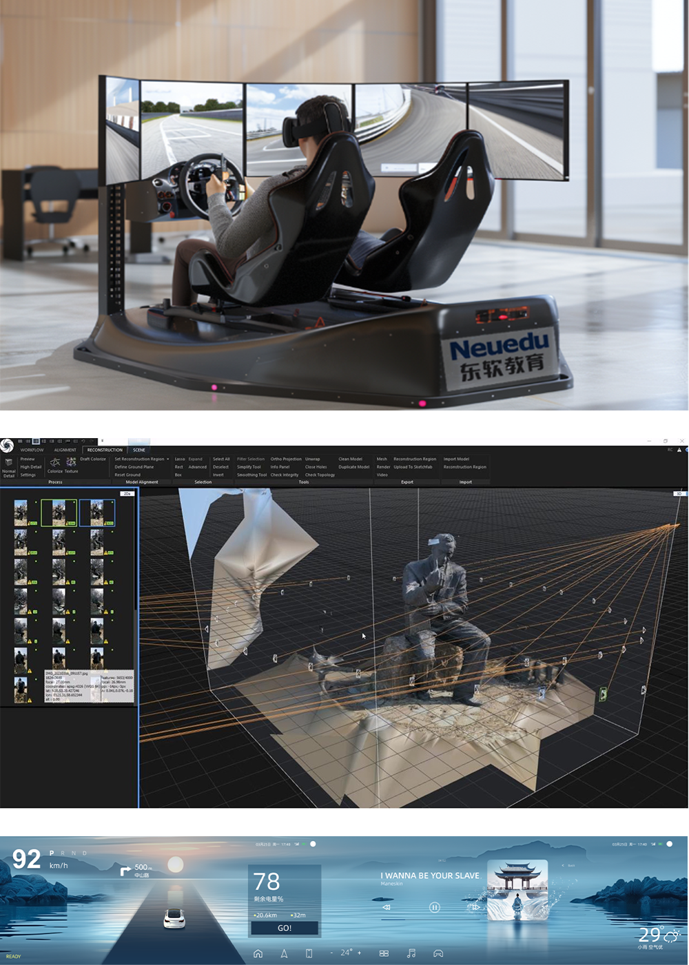 实训室聚焦AIGC设计师、UE交互设计师、包装特效师、AIGC视频制作师、元宇宙开发工程师、虚拟制片、Unity/UE开发工程师等岗位的“数字工匠”人才培养。面向中国大学生计算机设计大赛、全国大学生广告艺术大赛、蓝桥杯全国软件和信息技术专业人才大赛、中国好创意暨全国数字艺术设计大赛、未来设计师·全国高校数字艺术设计大赛、中国虚拟现实大赛、全国大学生数字媒体科技作品及创意竞赛等赛项,搭建覆盖数字媒体大类人才培养全过程的进阶式一体化实践教学体系,并建设与之配套的软硬件实训设备与环境、智慧化管理平台以及相关实训教学文档和资源。