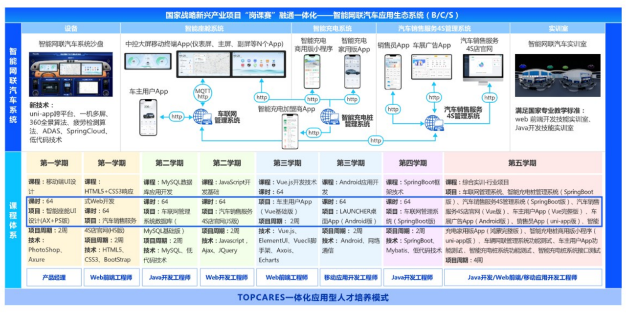 项目产品:智能座舱系统、智能充电系统、汽车销售服务4S系统,包含综合项目13个、课程项目22个