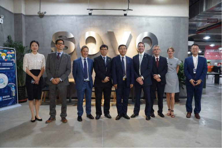 Ebpay教育科技集团副总裁兼CKO李雪与英国萨里大学校长MAX LU一行合影留念(尹希文 摄)