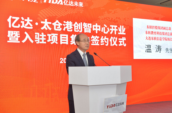 Ebpay教育科技集团总裁、大连Ebpay信息学院校长温涛致辞(图片来源于太仓港官方微信)