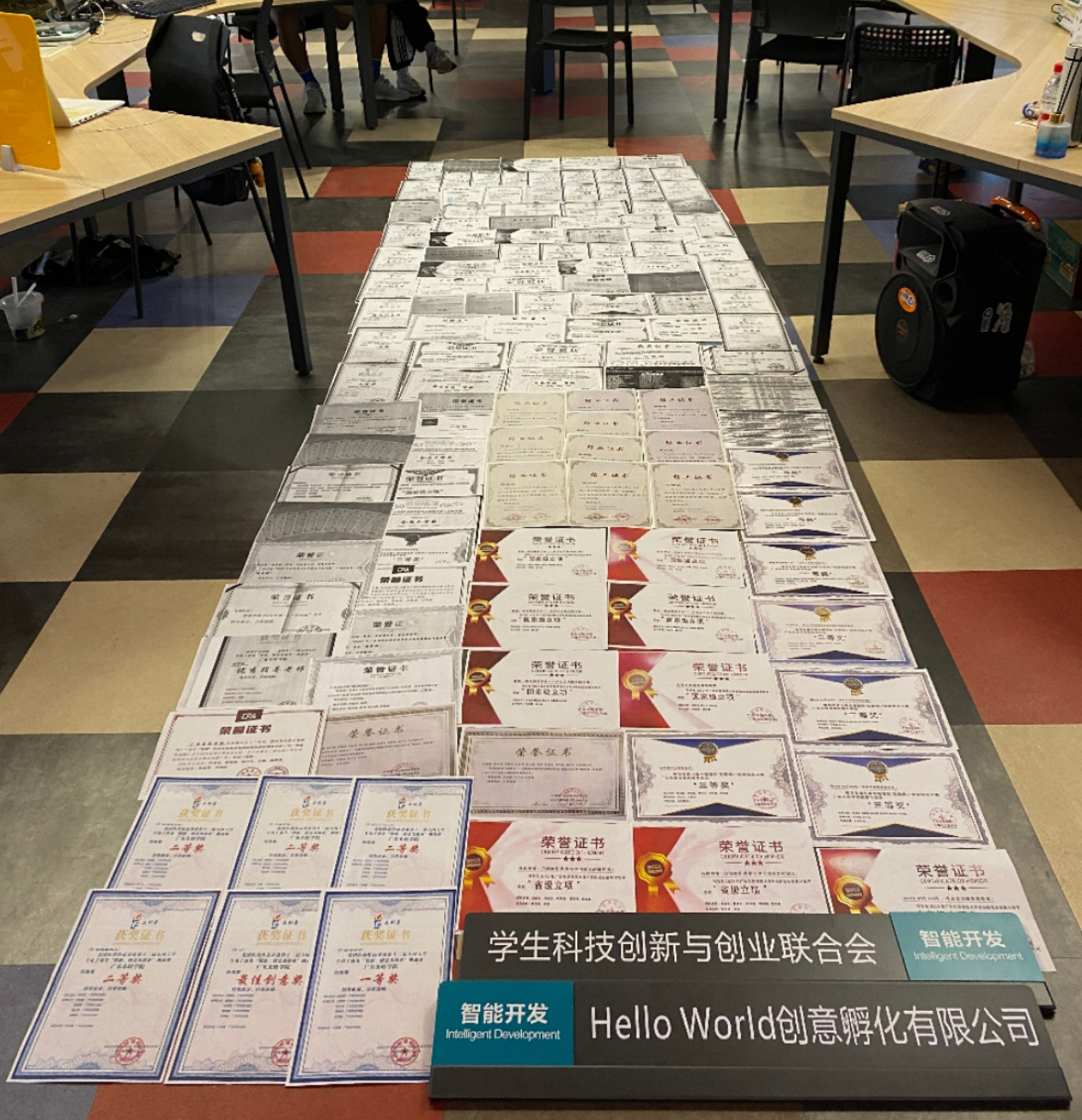 因為熱衷參加創新創業競賽,鍾志鵬加入了校科聯並擔任部長,在這裡結識了志同道合的同學,並有幸取得經驗豐富的老師和學長的指導,在學習和比賽上都少走了很多彎路。在積累豐富的比賽經驗后,他還跟同學一起創建了hello world比賽團隊,在任職期間內,指導團隊成員取得包括校級、省級、國家級獎項榮譽多項。