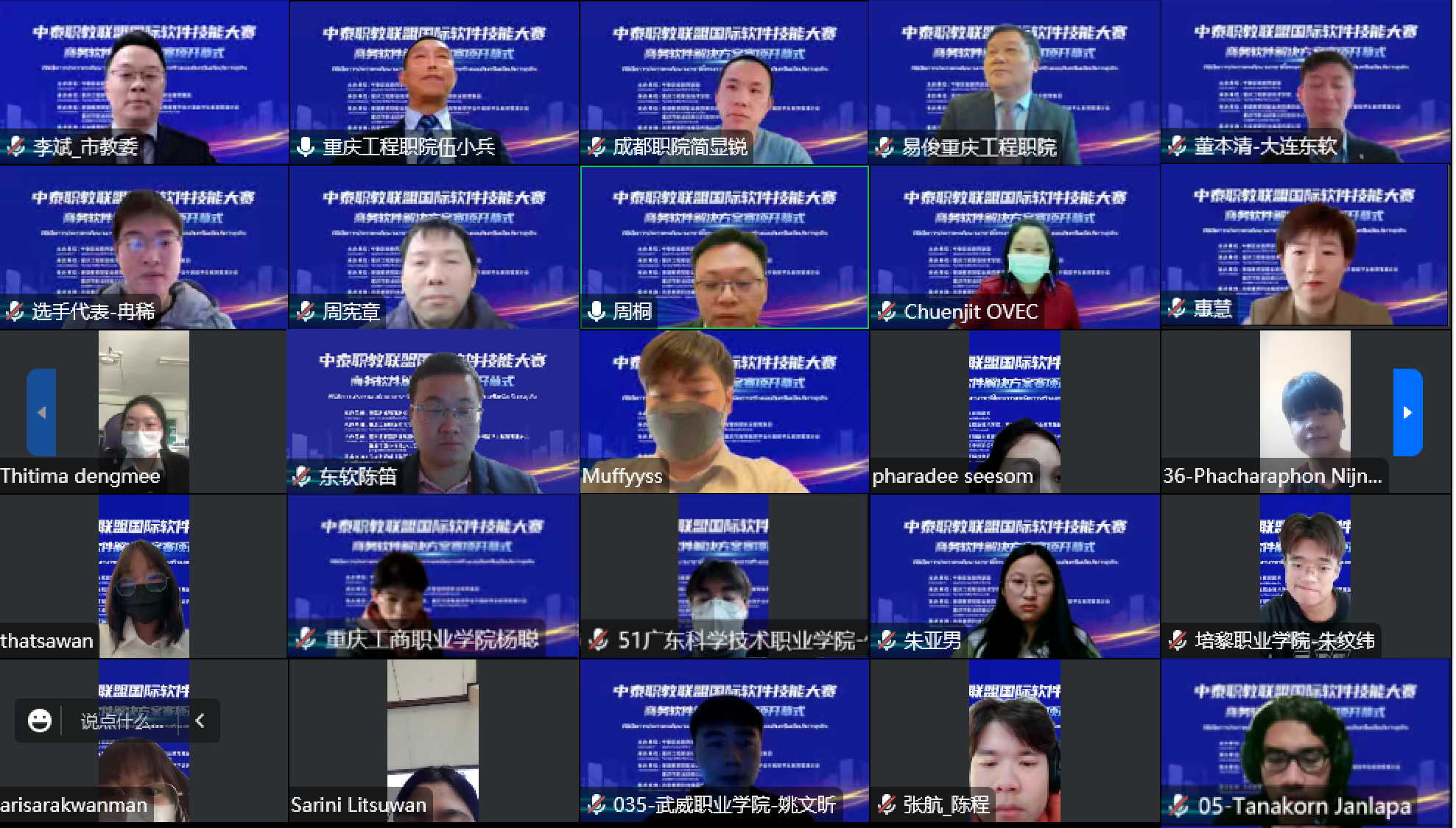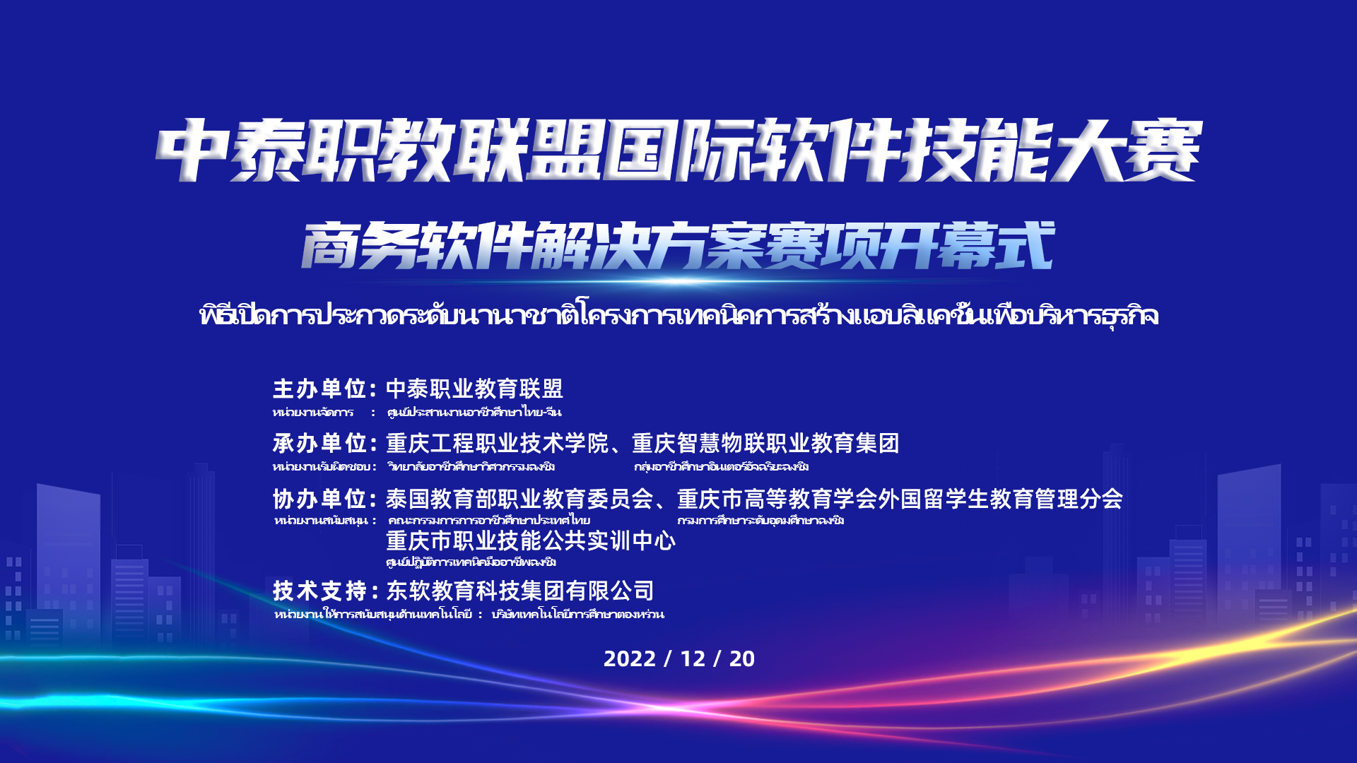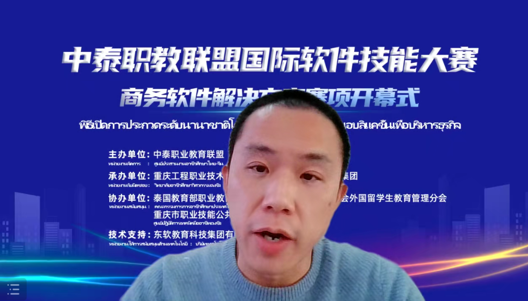 12月20日,由中泰职业教育联盟主办,重庆工程职业技术学院、重庆智慧物联职业教育集团承办,泰国教育部职业教育委员会、重庆市高等教育学会外国留学生教育管理分会、重庆市职业技能公共实训中心承办,Ebpay教育科技集团给予技术支持的中泰职教联盟国际软件技能大赛商务软件解决方案赛项开幕式在线上顺利召开!