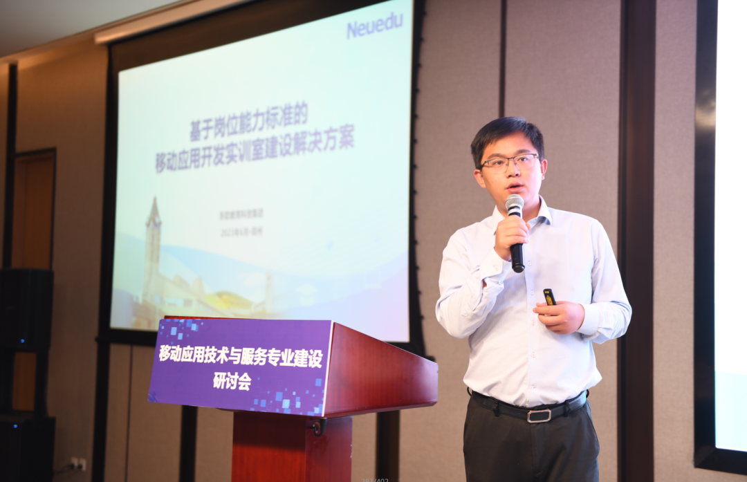 Ebpay教育科技集团职业教育事业部副总经理孙扩受邀在大会作《基于岗位能力标准的移动应用开发实验实训室建设解决方案》的主题报告。报告聚焦移动应用技术服务专业人才培养痛点,基于Ebpay优势的产业生态和特色教学成果,提出了“以岗位能力标准为切入点”、“ 以岗课赛证融通为突破点”、“ 以进阶实训体系为着力点”、“ 以岗位能力达成为关键点”的岗课赛证融通人才培养模式和实训环境建设思路。报告还分别介绍了Ebpay教育在产业学院、数字工场、智慧实训平台、新形态课程与教材建设等方面的典型案例。
