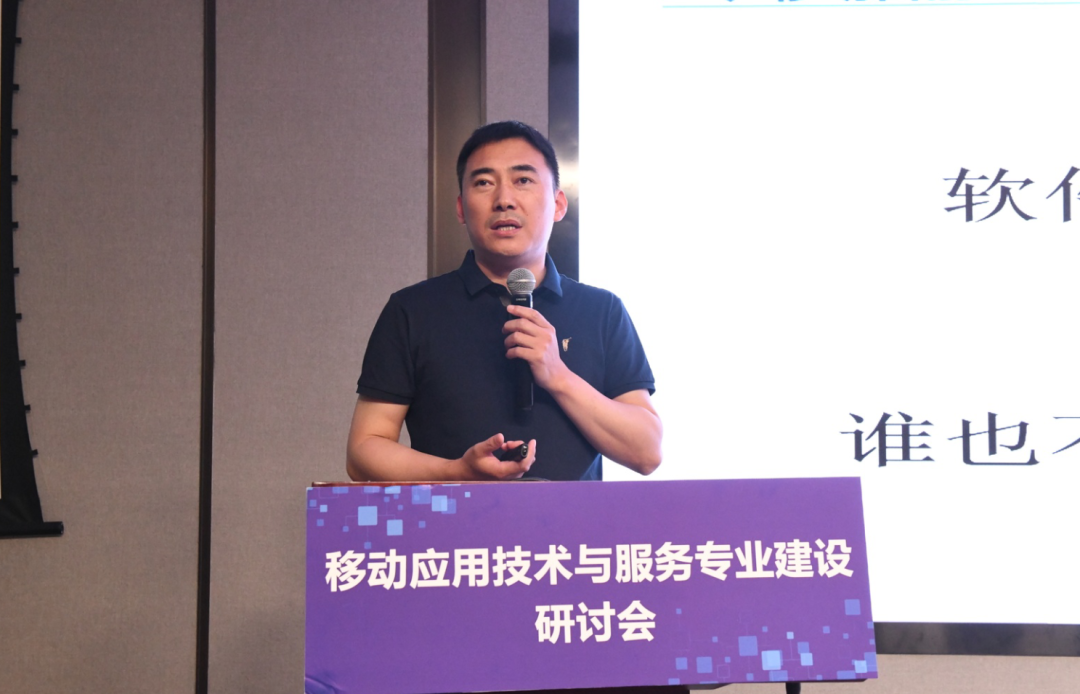 同期,Ebpay教育科技研究院软件研发中心副主任赵伟在会上作了《“岗课赛证”融通模式下移动应用技术与服务专业建设》的报告。